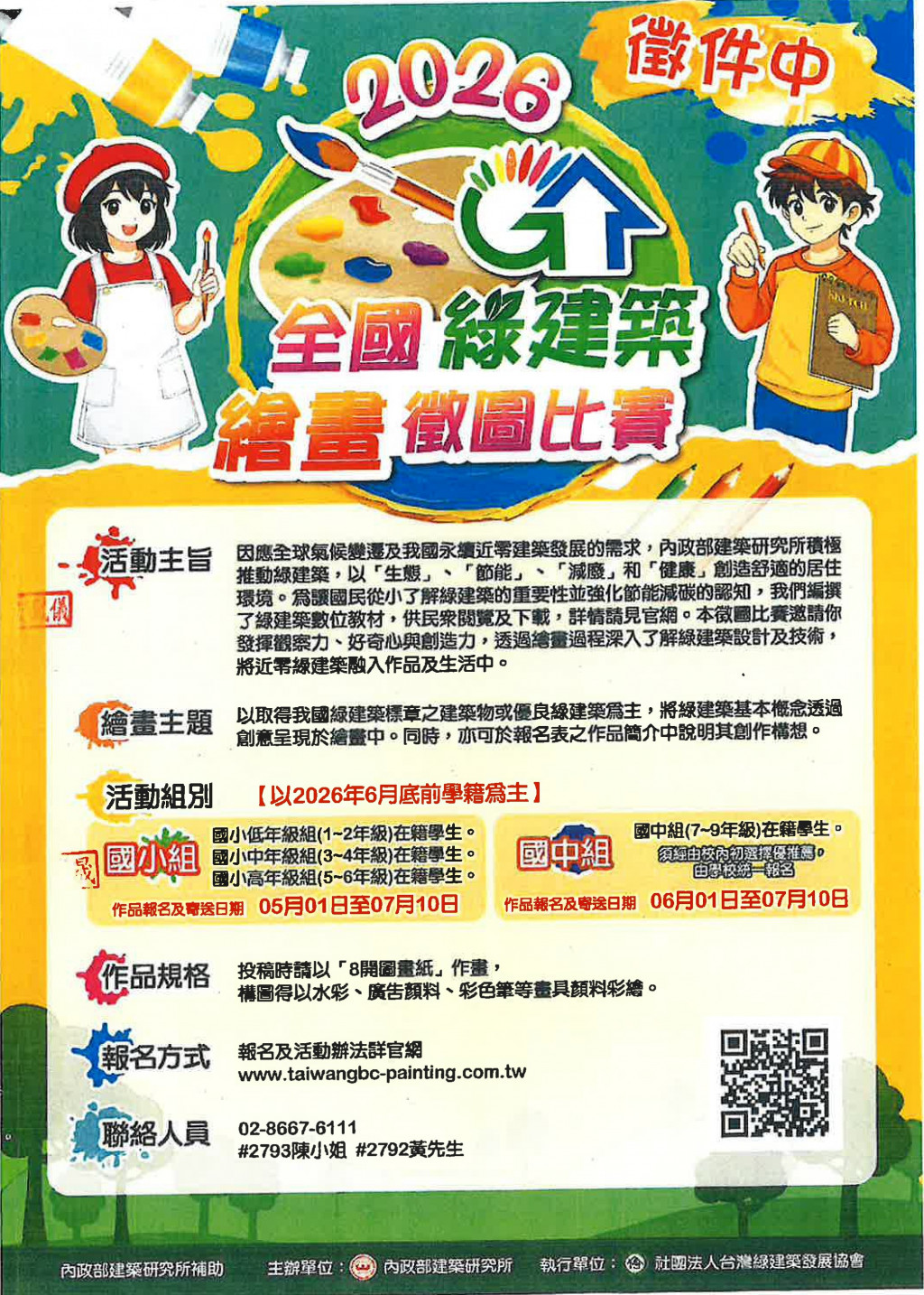 三、參賽資格(以2026年6月底前學籍為主):(1) 低年級組1~2年級在籍學生。(2) 中年級組3~4年級在籍學生。(3) 高年級組5~6年級在籍學生。