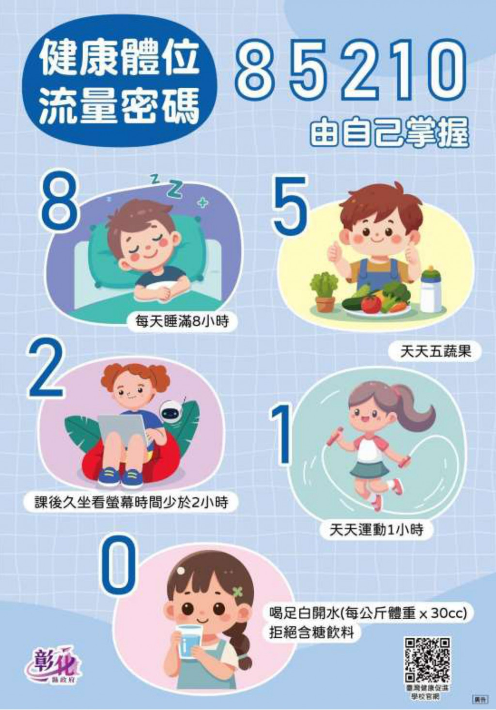 【轉知】彰化縣政府製作健康促進政策宣導單,請家長多利用留意學童身體健康。